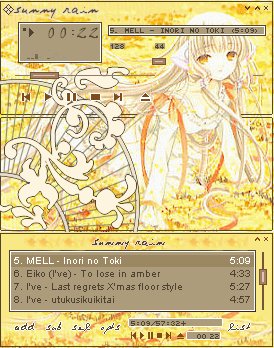 Here are some winamp skins for you to use while you enjoy your music. :) I only made two of them, but I did get the permission from the creators to use the others. So if you would like to use them for your website, please ask them for their permission.